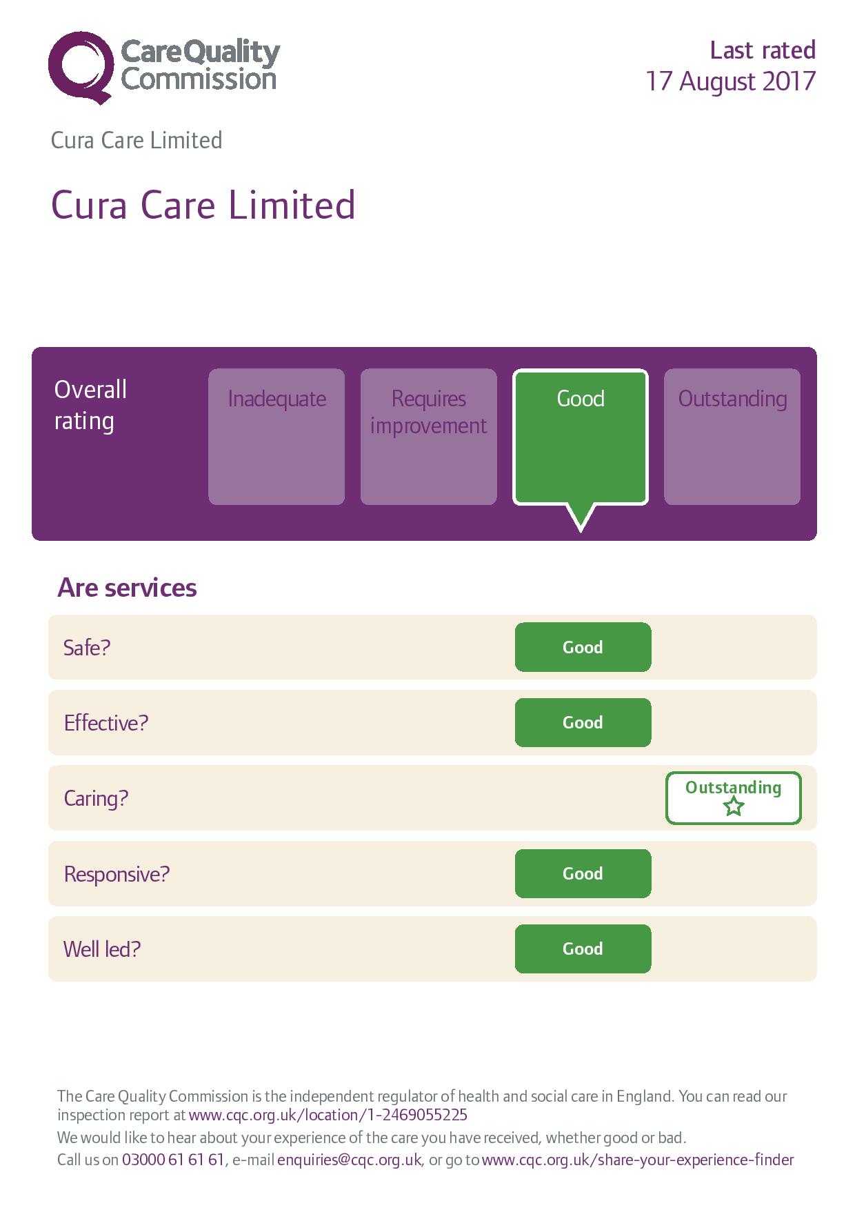 This inspection report is a testament to the amazing contribution of the whole team at CuraCare and I would like to thank everyone for their outstanding contribution.